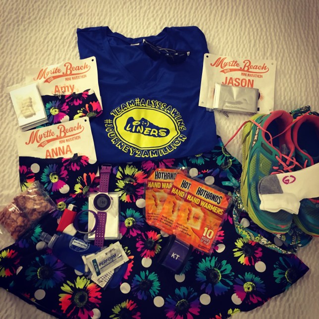 The race started at 7:00am, which meant we got to sleep in, by RunDisney standards. We were meeting Kerry and Kathleen in front of our building at 5:45am to walk to Starbucks, before heading to the corrals. It was a bit chilly so I wrapped myself in a foil blanket to keep the crazy out – I mean, keep my body heat contained! Once at Starbucks I got some water for my water bottle and took advantage of a real bathroom for a quick pit stop. Our timing was great as the line behind us was super long by the time we left. We headed to the expo building to try to meet up with our group before going to our corrals, but everything had been taken down and the designated meeting spot no longer existed! We got a group photo and made our way outside toward the corrals. Everyone needed a port-o-potty by this time, so we found a line and waited only a few minutes. They had some type of urinal system for the guys, and the regular port-o’s had these foot levers in the floor that “flushed” when you pumped them. Amen to no stinky port-o’s on race morning! We regrouped and headed to the corrals.