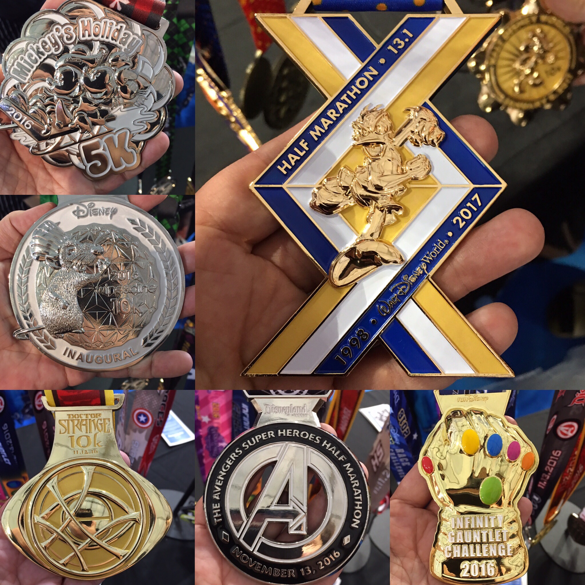 L to R: 2016 Marathon medal, Castle to Chateau medal, and Disneyland Paris Half Marathon medal