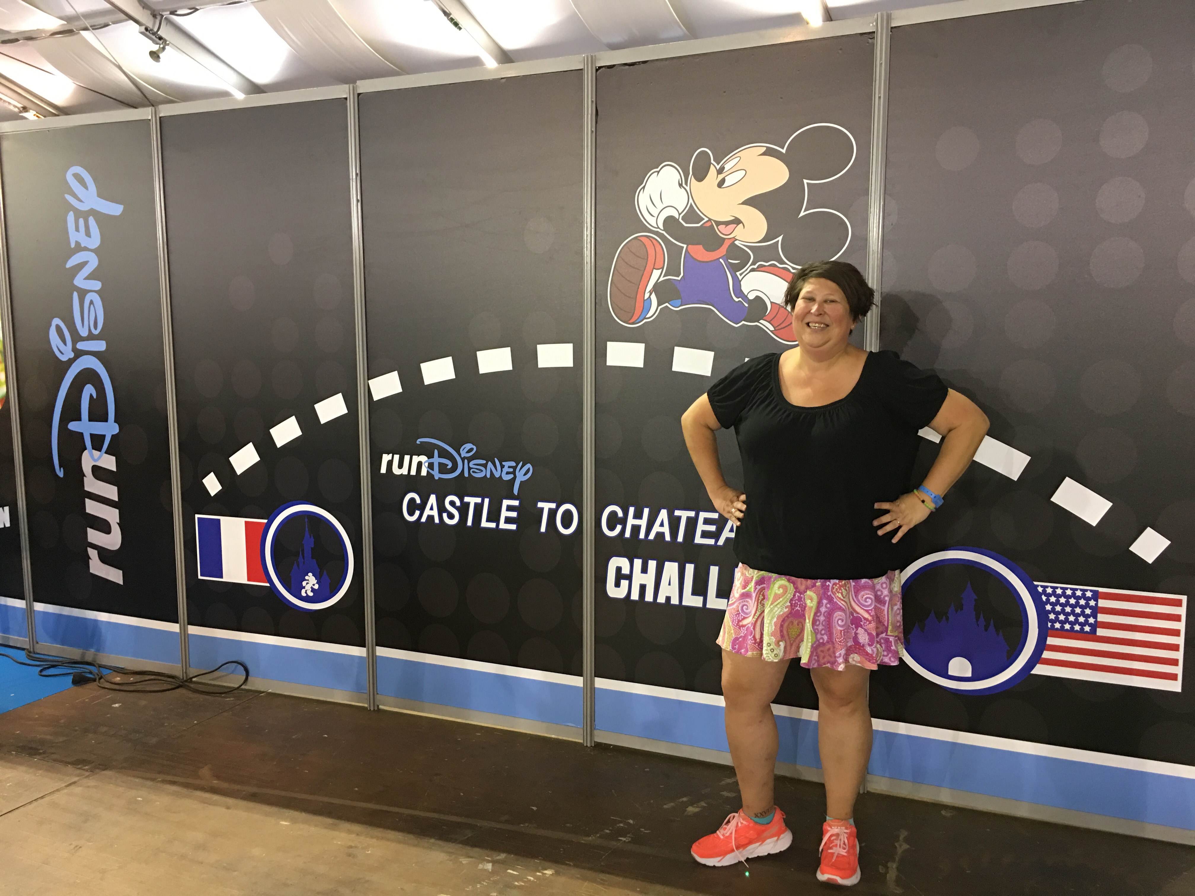 The middle part of the course was full of beautiful scenery throughout the French countryside. There was one part of the course that was basically trail running around a lake, which I walked most of, because I don’t trust my ankles not to roll! Then we were back on pavement for the last quarter of the race. This is where I ran into Lynda – it was soooooo good to see her beautiful friendly face and talk to her for a few seconds! Shortly after seeing Lynda, I made a new running friend, Patrice and we leapfrogged each other and then ran together for a little bit, until Kathleen caught up to me. She was killing it, and I walked with her for a few minutes while we chatted, until she was ready to take off again! By this time, we were running into Hotel Sante Fe, and then Hotel Cheyenne, including running right by the building where I was staying. For some reason, I always love running past/near my hotel – it happens frequently in Disneyland and Myrtle Beach, so it was a nice familiar thing to have happen here, too. I’m a dork, I know, but if you know me, you know it’s the little things that make me happy. 🙂